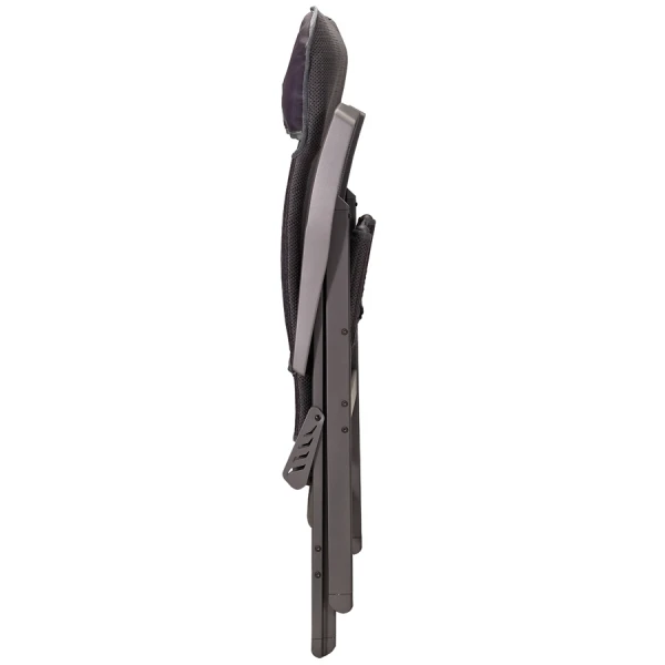 Der Sitzbezug besteht aus ultraweichem DuraDore 3D Mesh mit 0,8 cm elastischer Zwischenschicht und garantiert höchsten Sitzkomfort. Zusätzlichen Komfort bietet die um 3,5 cm verlängerte Sitzfläche mit der einzigartigen Ergoshell-Sitztechnologie. Ein Kopfkissen ist in der Rückenlehne enthalten. Der Rahmen besteht aus ultraleichtem DuraLite-Material und wird mit unserer bekannten SpaceBox-Technologie hergestellt, die Klappscharniere sind aus Aluminium gefertigt.