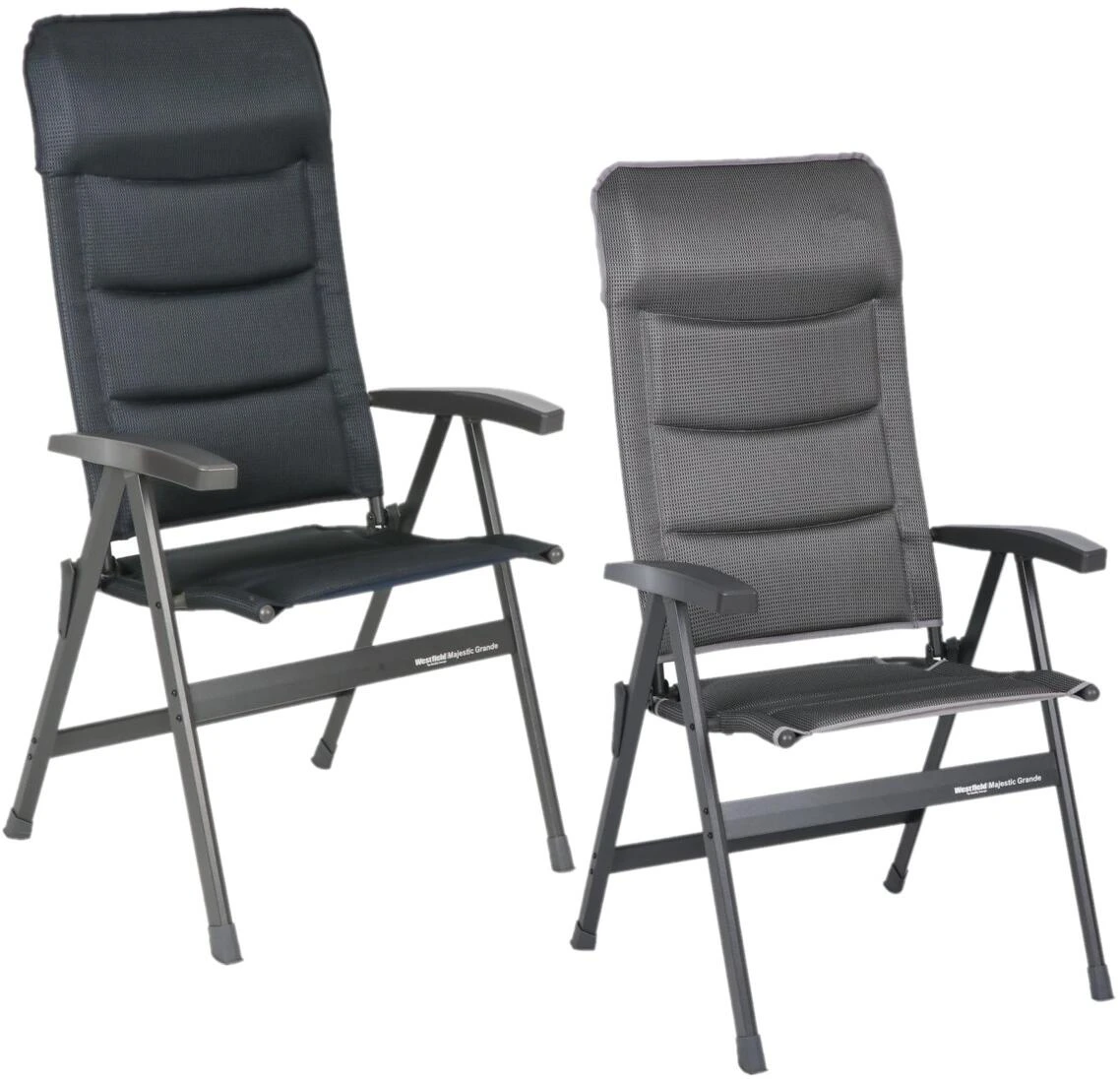 Der Majestic Grande Campingstuhl ist das superleichte und bequeme Modell für den nächsten Urlaub. Aufgrund der leicht erhöhten Sitzhöhe von 50 cm ist der Stuhl besonders gut für Menschen ab einer Körpergröße von 1,75 cm. Das DuraDore® 2D Soft Touch Material sorgt für ausgezeichnetes Sitzkomfort. Der Campingstuhl ist mit einem verstärkten pulverbeschichteten Aluminiumrahmen konstruiert und sorgt dank der speziellen Form des Aluminiumprofils für ein Packmaß von 116 x 67 x 12 cm.
